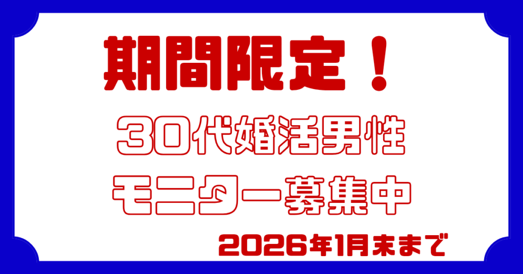月会費だけで本気婚活!モニター3名募集【柏市周辺・30代男性向け 30代男性向けモニター募集