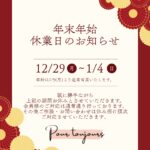年末年始休業のお知らせ 誠に勝手ながら、下記期間を年末年始休業とさせていただきます。 休業期間: 12月29日(月)~1月4日(日) ※1月5日(月)より通常営業いたします。 なお、会員様への対応は通 ...